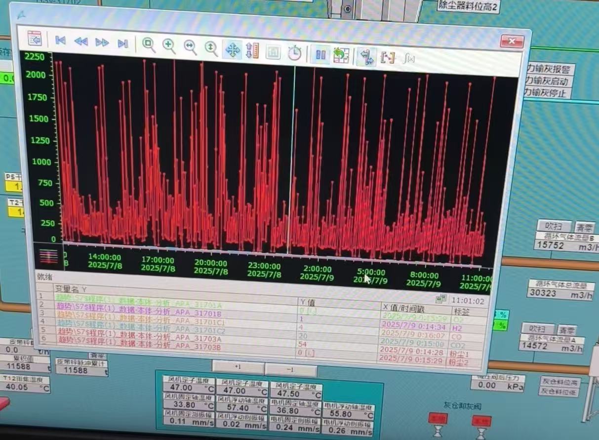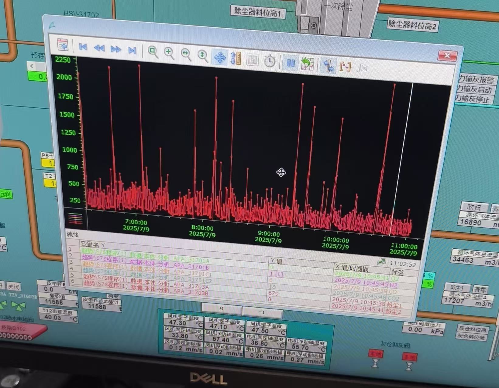 故在2DC出口與循環(huán)風(fēng)機(jī)相連的2個(gè)管道增加粉塵在線監(jiān)測(cè),不僅可以實(shí)時(shí)就地或者中控查看2DC的除塵效果,還能及時(shí)發(fā)現(xiàn)進(jìn)入循環(huán)風(fēng)機(jī)的粉塵是否超標(biāo)。另外還可以作為整個(gè)系統(tǒng)運(yùn)行是否健康的判斷指標(biāo)之一,意義十分重要!